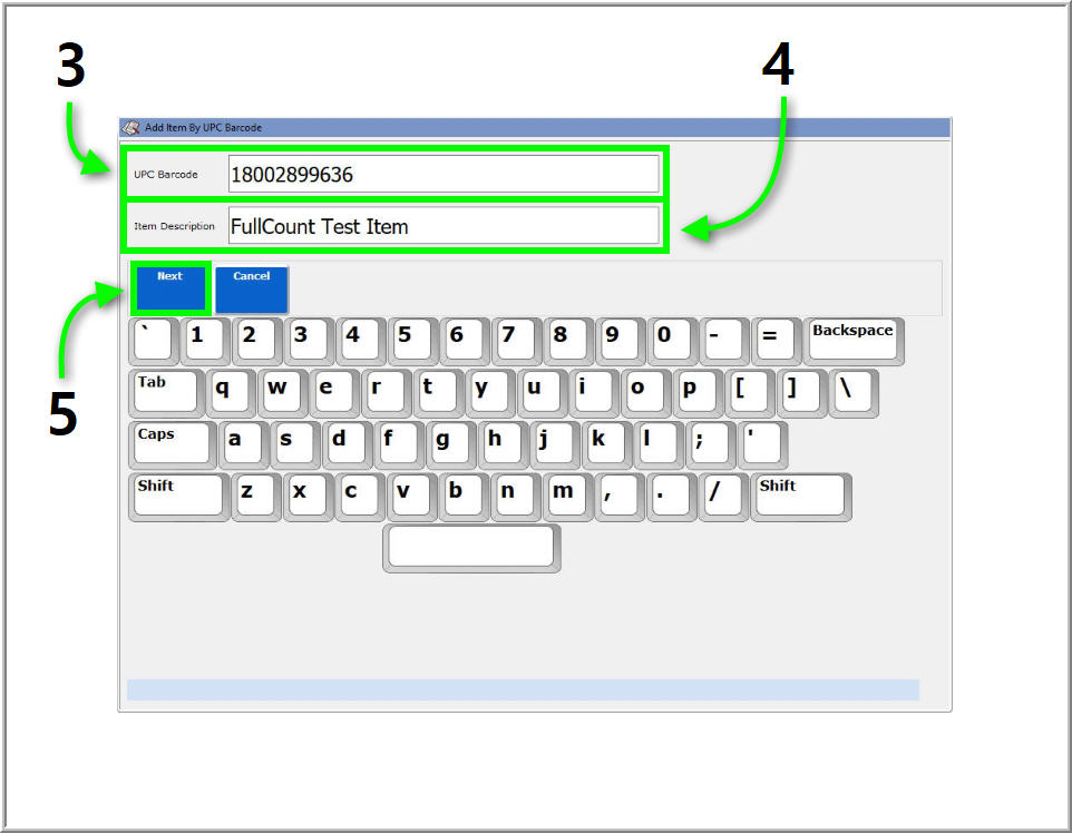 etc.) it may be easier to add items into FullCount from the Touchscreen