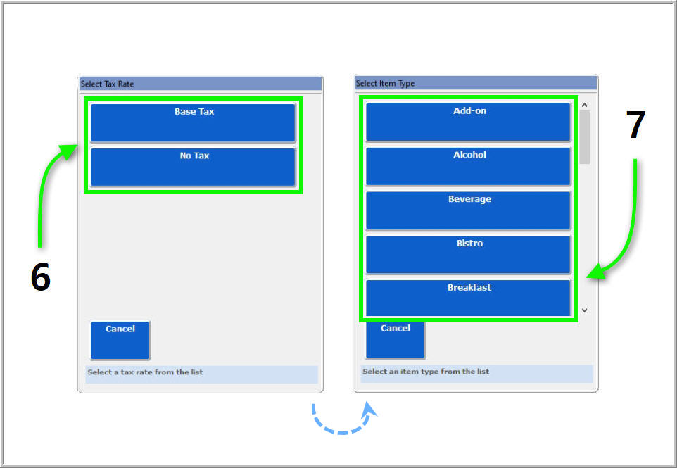 to be added to a menu from the Back Office to be manually selected on