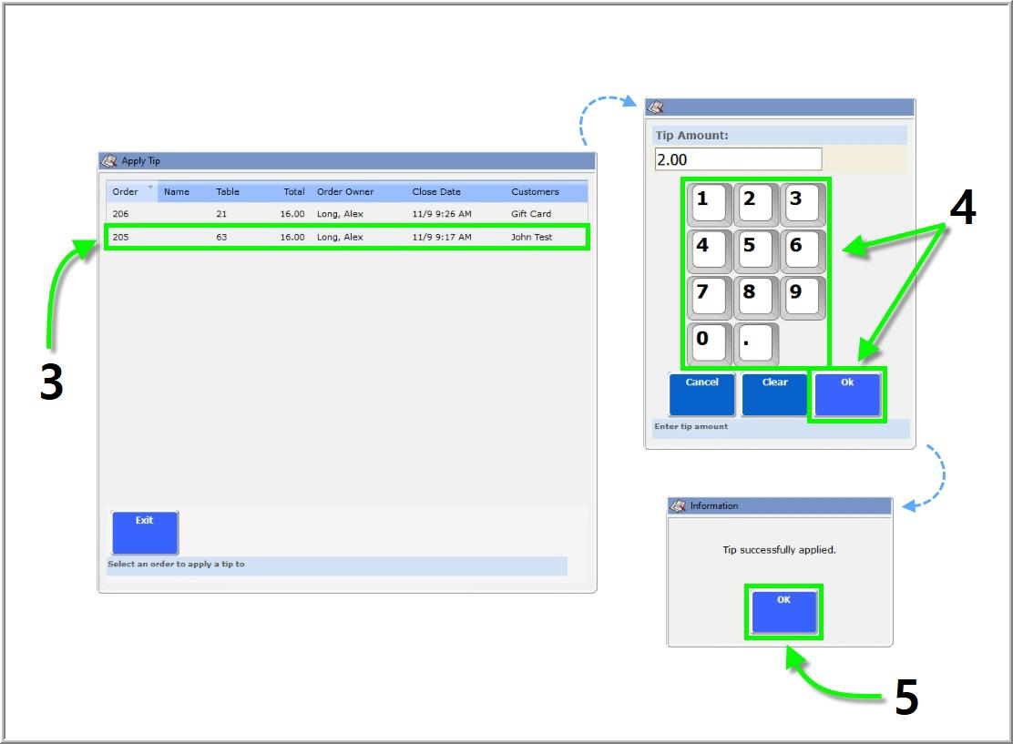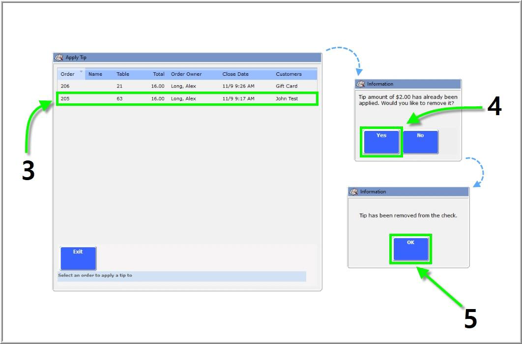 The tip has now been applied to the customer’s account or deducted from the gift card’s remaining balance. Click Exit to return to the main Touchscreen.
