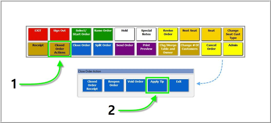 The Closed Order Actions button on the Touchscreen allows users to print a receipt for a closed order, re-open a recently closed order, or Void items from recently closed orders. Closed Order Receipt Closed Order Receipt – To reprint receipts of ...