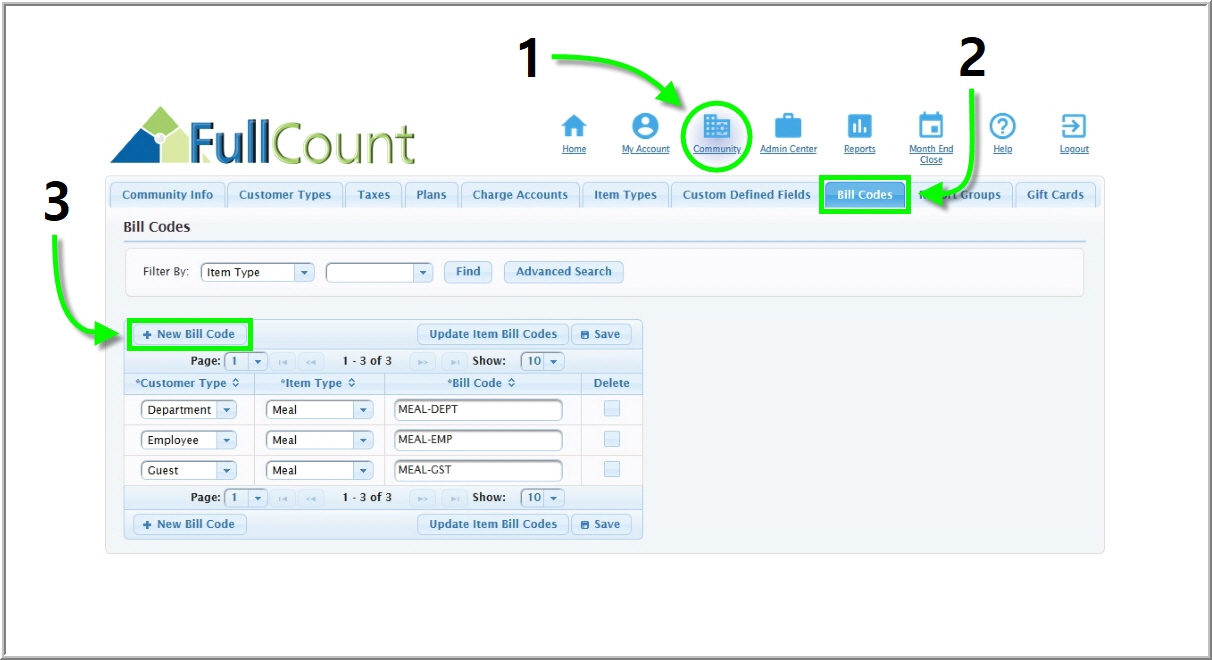 charges using Bill Codes. In FullCount, bill codes are assigned to