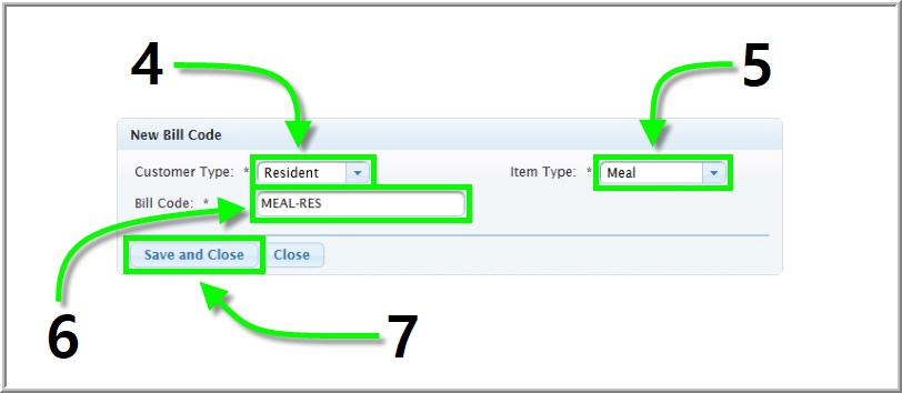 To assign a new bill code to an item type, follow the steps below: