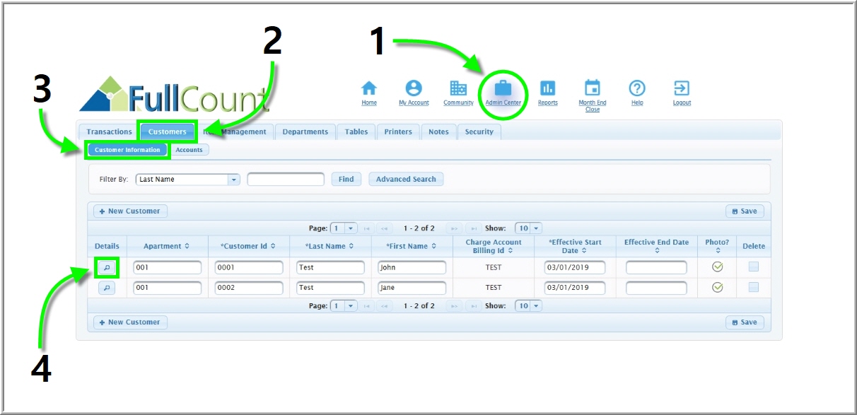 Managing FullCount will regularly require setting up new Customers for your community. In FullCount, the term ‘customer’ denotes a Back Office profile that can be assigned from the Touchscreen. Each customer profile also requires a charge account for ...