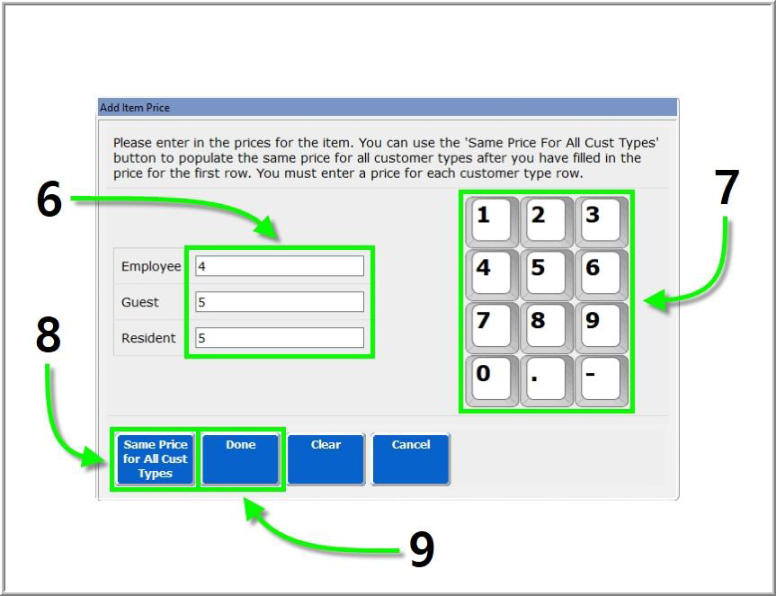 - Enter the price for the customer type using the number pad.