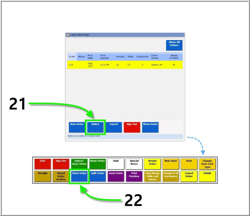 - Highlight the desired order on the Select/Start Order screen and press Select.