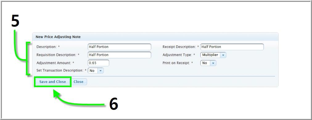- Print on Receipt – Choose if the note description and price adjustment should appear on customer receipts.