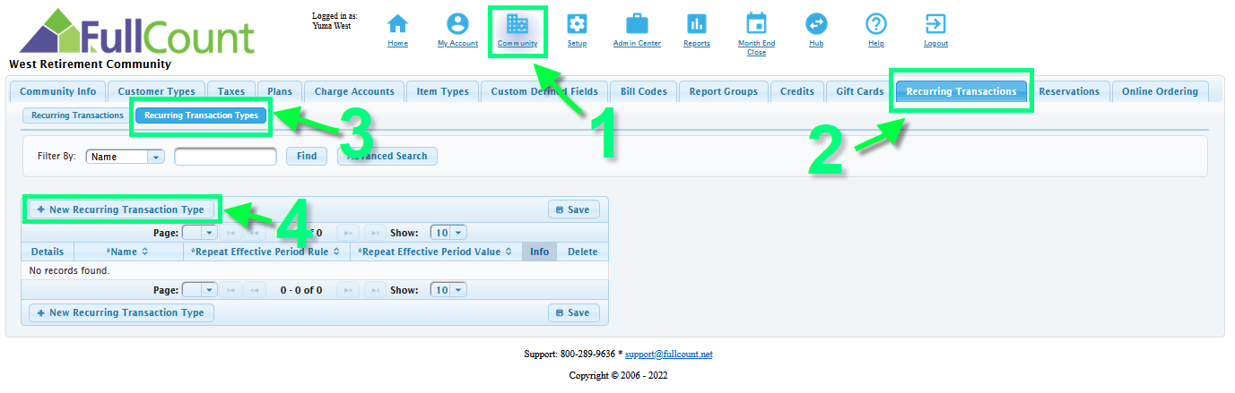 - Choose the Recurring Transactions Type Sub Tab
