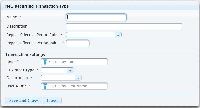 - Select a Recurring Transaction Type*