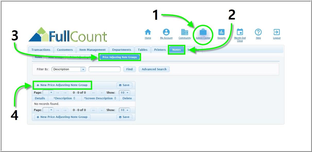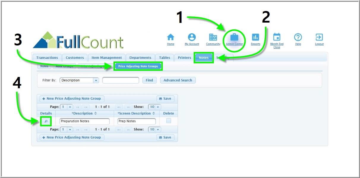 Price adjusting notes can be added or removed from price adjusting note groups. Use the instructions below to organize the Special Notes on the Touchscreen in a way that best suits your community’s needs. To find an existing price adjusting note: