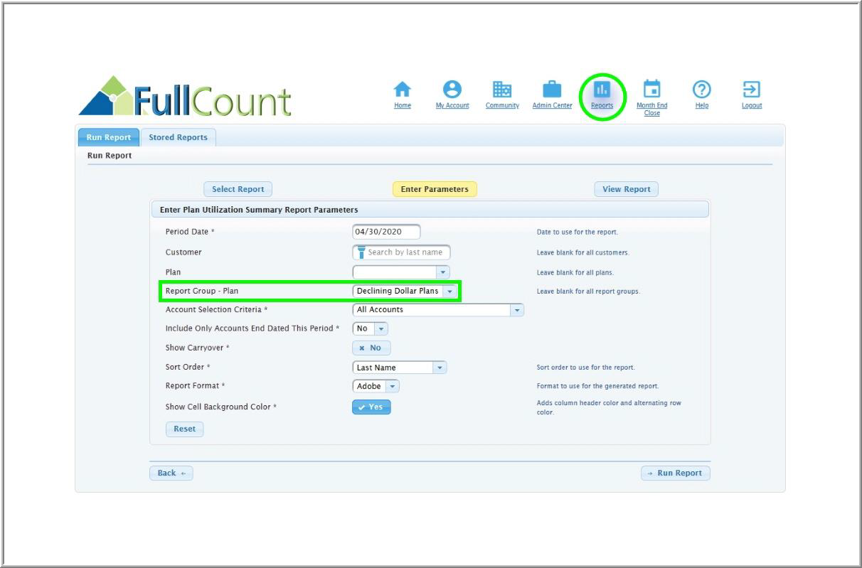 FullCount reports pull information using search parameters such as