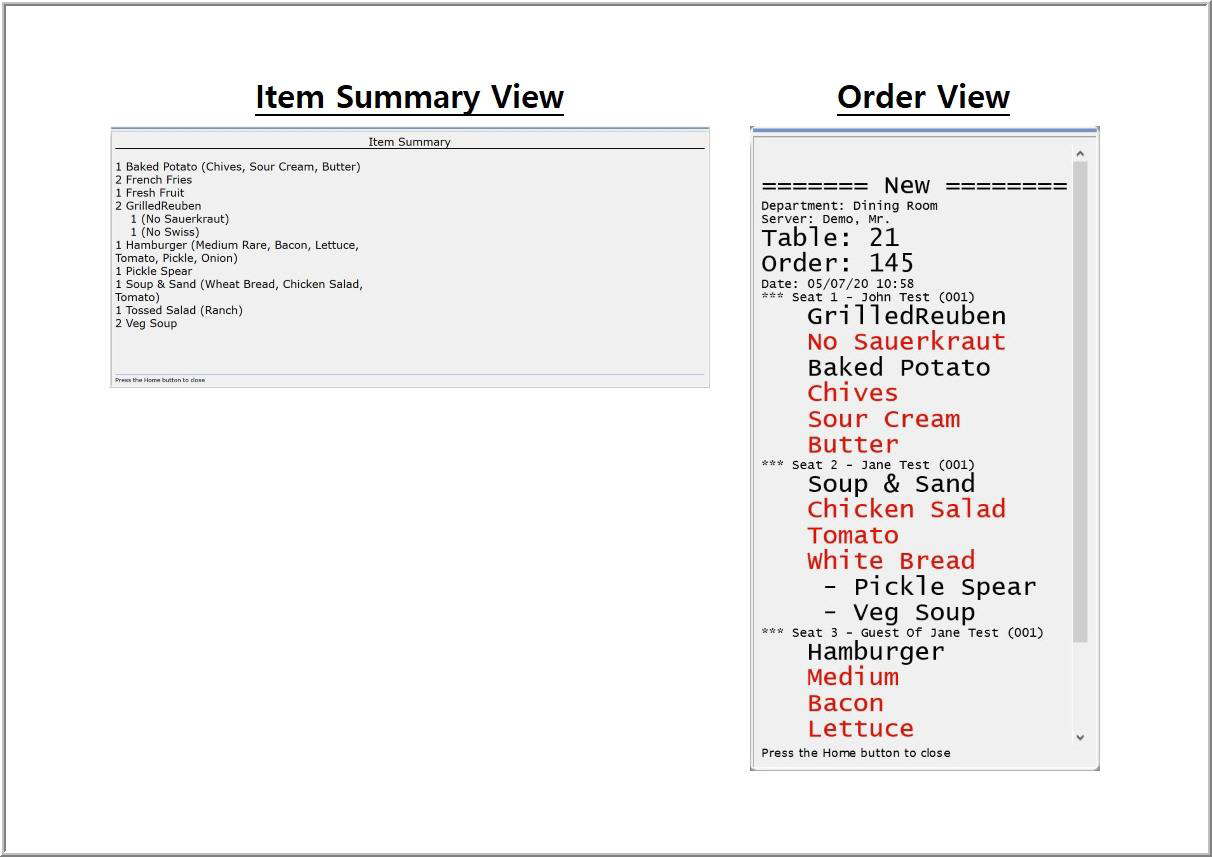 orders sent to the kitchen by a server. In addition to ordered food
