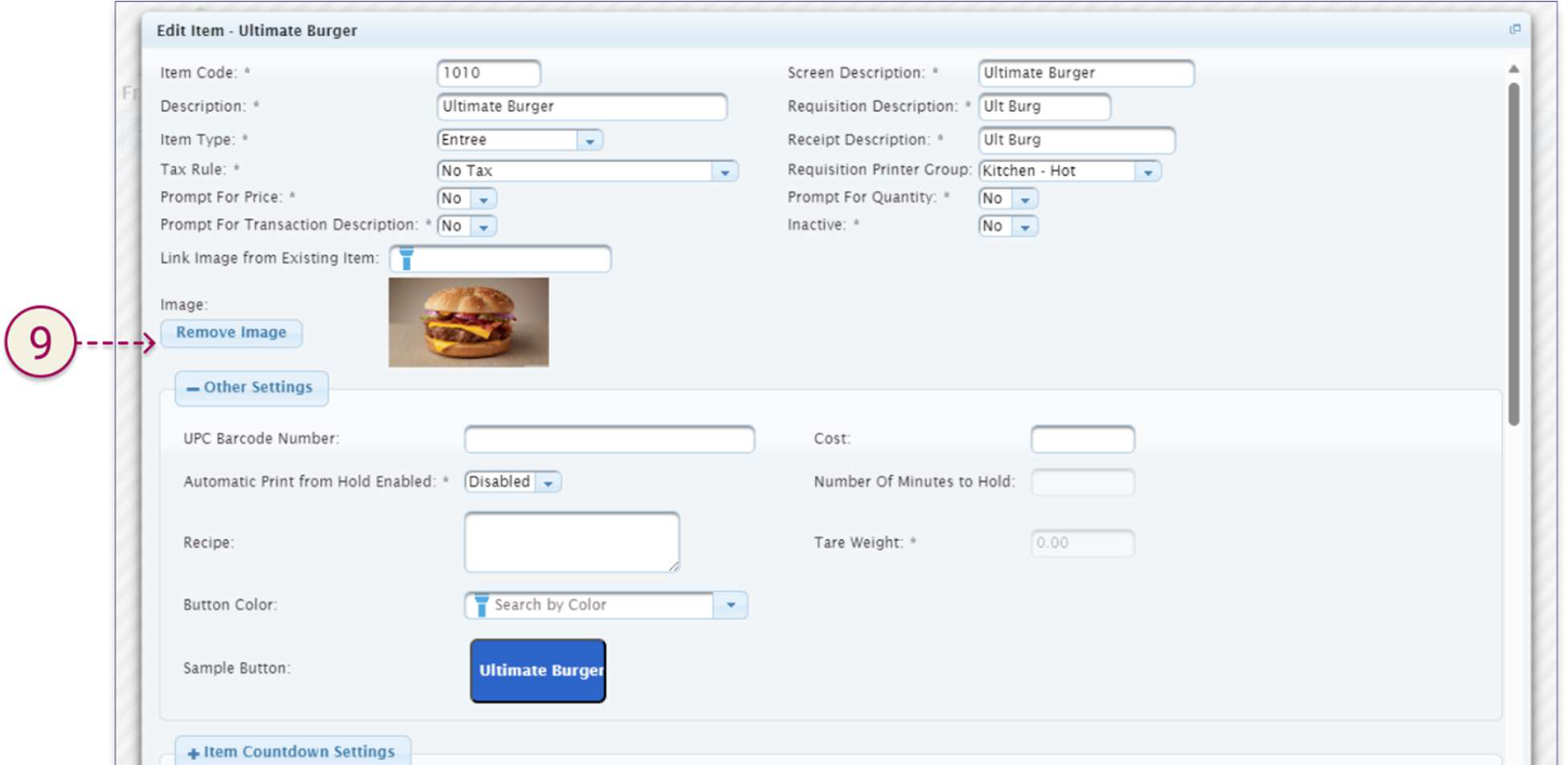 option to Remove Image. Once the image is removed, you will see an Upload Image option (see 8 above).