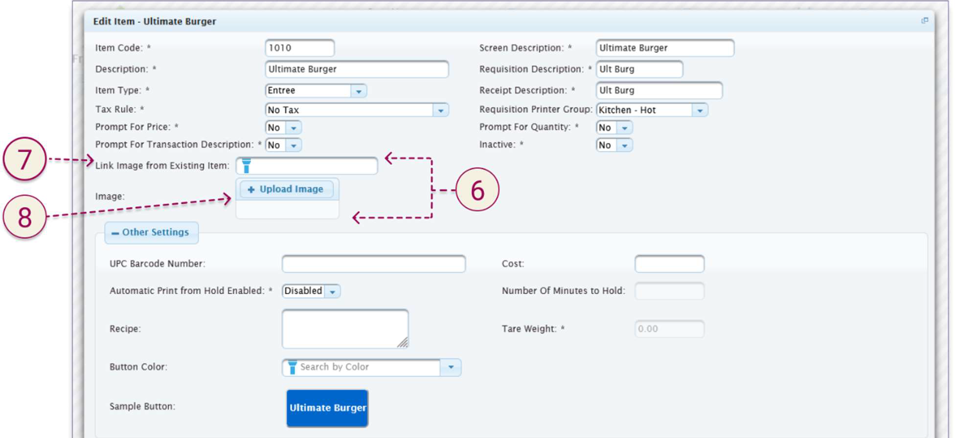 - If the item does not already have an image associated with it, you have the option to Upload Image.